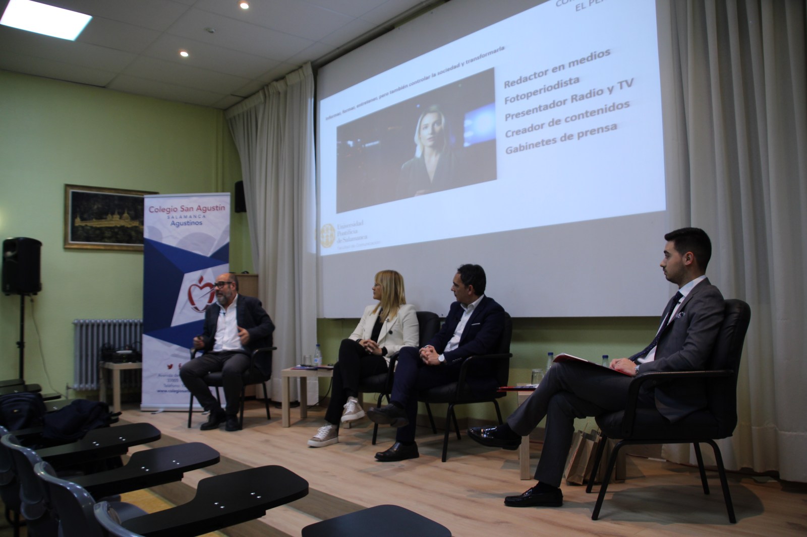 El Colegio San Agustín de Salamanca ha celebrado la VII Semana de Formación “Enseñar Educando” con ponentes de ámbito social, político, económico y universitario con el objetivo de informar a sus alumnos sobre las distintas opciones profesionales para orientar su futuro. He tenido el placer de formar parte de la mesa dedicada a la comunicación, en la que he hablado sobre la evolución del audio, de la radio al podcast, además de impartir un taller práctico sobre producción de podcast a un grupo de alumnos. Una experiencia más que suma en mi labor de formar en torno al audio.