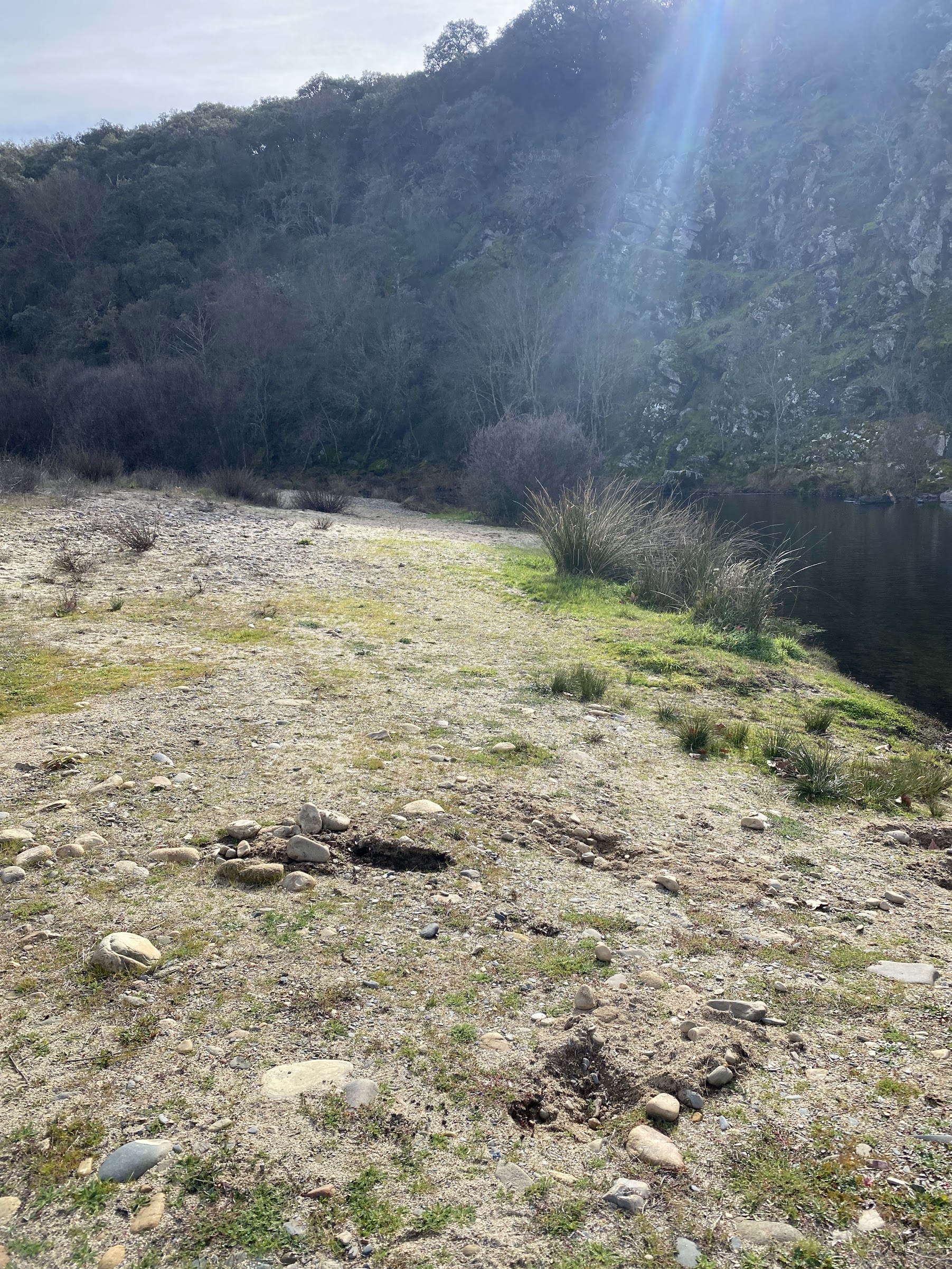 Seguimos avanzando junto a la ribera hasta el reencuentro con el río Cuerpo de Hombre en una intersección perfecta con forma de T. Puedes encontrarte, como fue nuestro caso, con algún rebaño de cabras pastando junto al río bajo el ojo atento de su pastor. Es en esa zona donde se encuentra el Puente Romano de Sotoserrano.