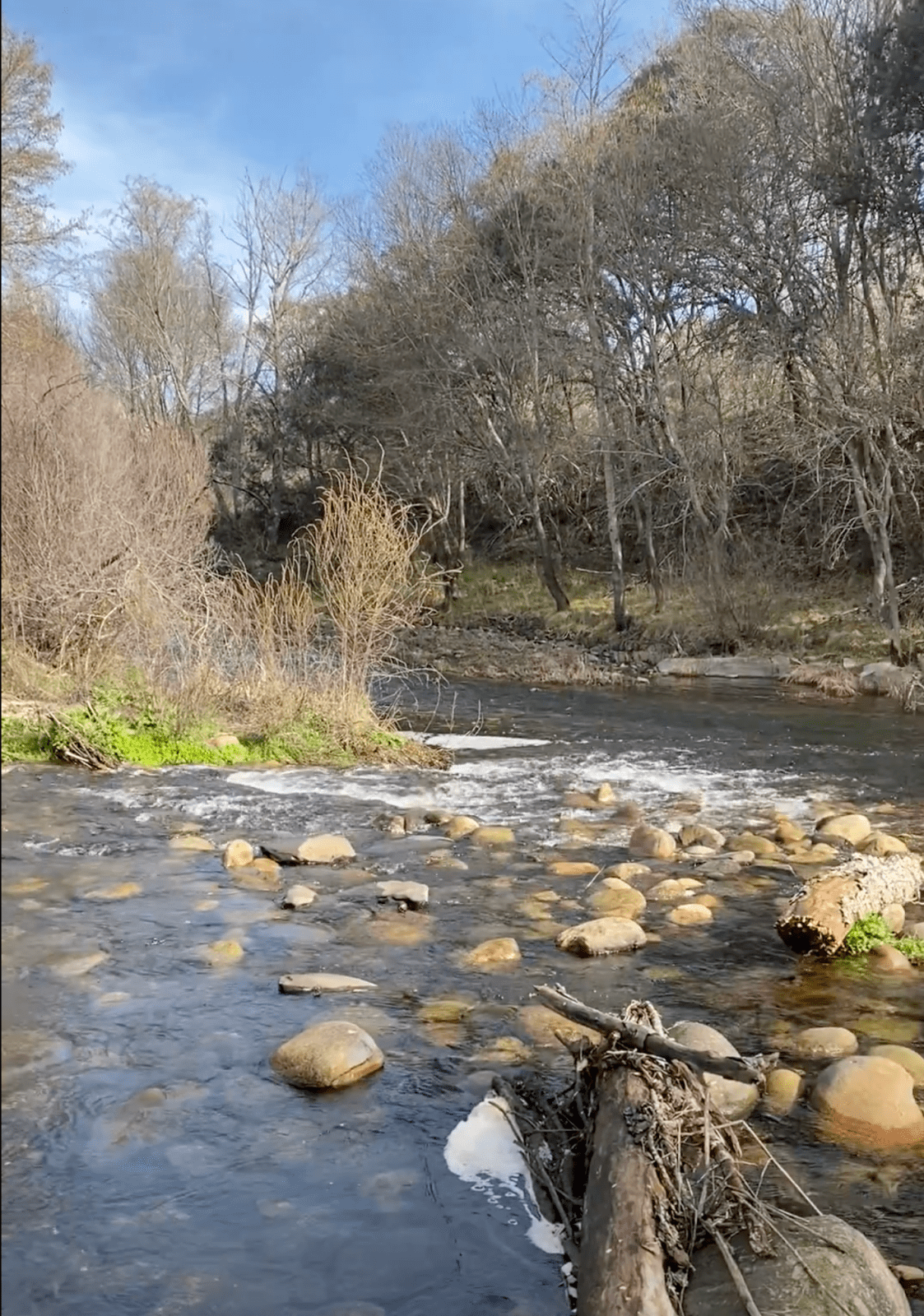 El paseo junto al río resulta precioso. El caudal baja con fuerza y es difícil resistirse a fotografiarlo.