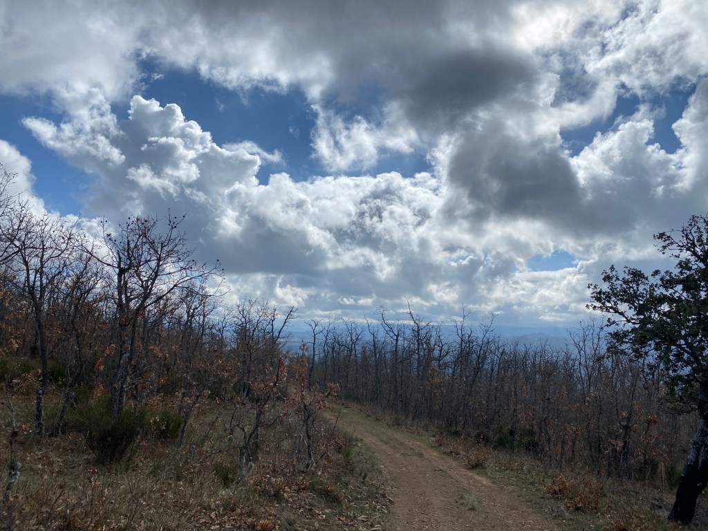 La ruta es sencilla y transcurre por caminos sin grandes desniveles en los que los robles primero y las encinas después acompañan nuestro paso. Realizamos esta ruta a finales de febrero y con los árboles pelados que, aunque también tiene su encanto, invita más a realizarla en otoño o primavera.