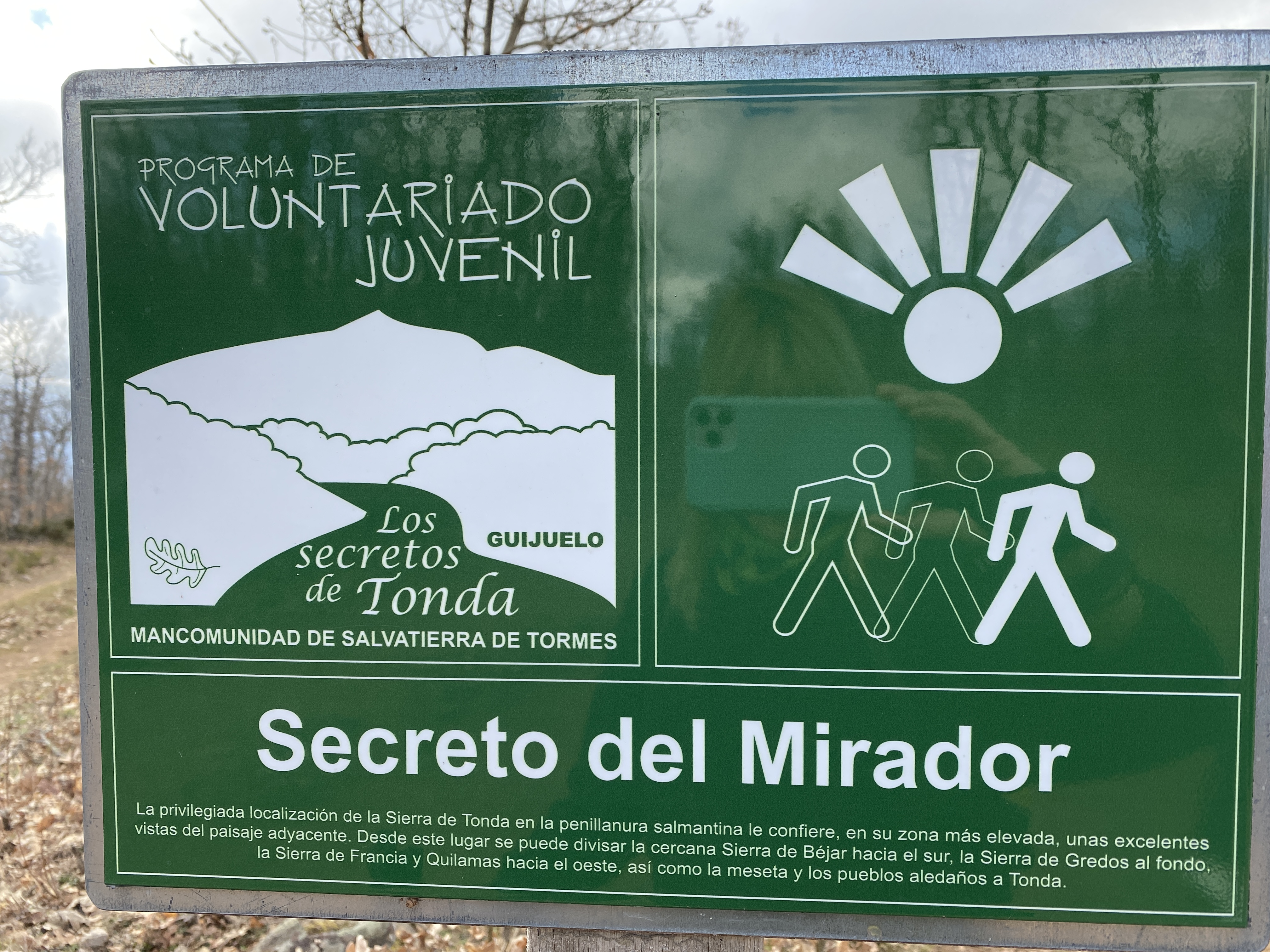 El primero que vemos nada más iniciar el camino es el “Secreto del Mirador”, una delicia que nos lleva a parar y contemplar el paisaje que tenemos frente a nosotros con la Sierra de Béjar, Quilamas, la Peña de Francia o parte de la Sierra de Gredos.