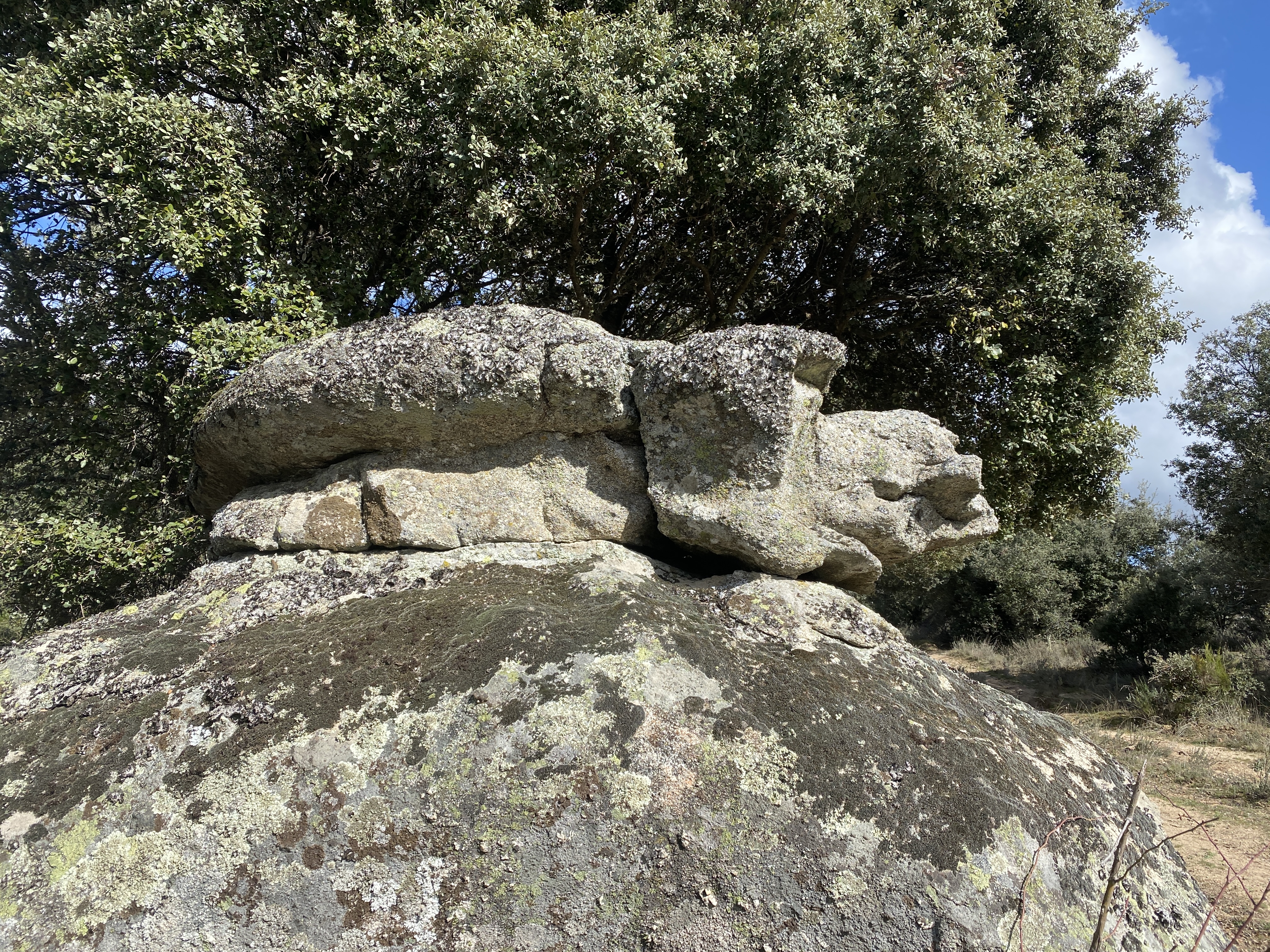 Casi finalizando la ruta, vamos al encuentro del trabajo que la erosión del tiempo y el clima ha hecho sobre las piedras graníticas de la zona, para divisar a lo lejos el “Secreto de la Tortuga”. Se trata de la tortuga de Santiago, un claro ejemplo de lo caprichosa que puede ser la naturaleza para dotar de formas extraordinarias un materia tan duro como el granito. Una curiosidad: aunque la tortuga se distingue perfectamente cuando la miras de frente, prueba a verla desde el lateral y comprobarás que la tortuga desaparece.