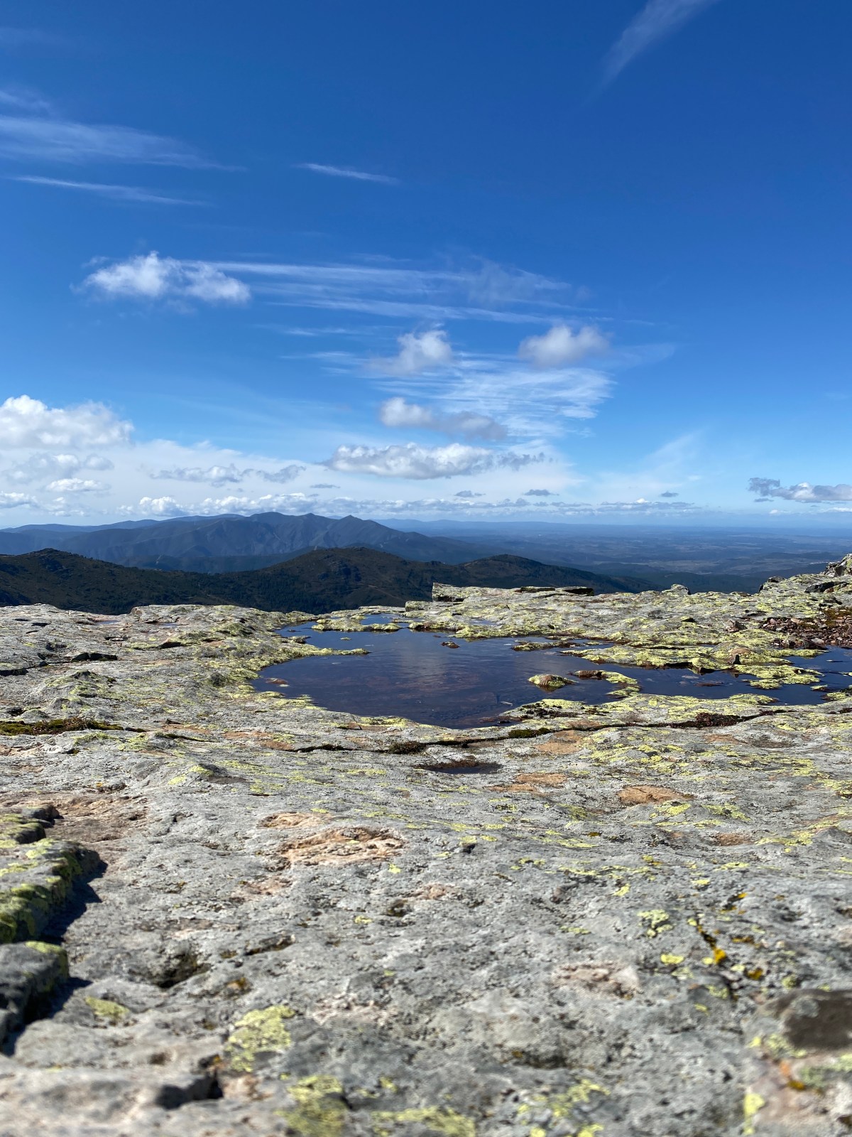 Una vez que llegamos a una pequeña torre construida con piedras y que hace las veces de hito, seguimos de frente hasta llegar a a la Mesa del Francés. Se trata de una plataforma llana de granito y muy amplia desde la que se divisa la Sierra de Francia en todo su esplendor. Conviene hacer una parada y divisar el paisaje.