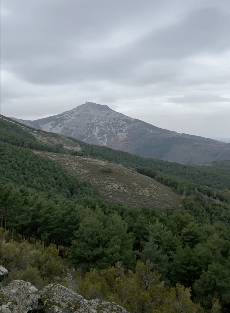 La ruta parte del Portillo (1.242m) en La Alberca. Iniciamos la caminata hacia la Peña del Huevo (1.414m), primera parada obligatoria, aunque no podemos subir a ella debido a la niebla que ha humedecido la piedra y la ha convertido en una pista de patinaje. El trazado hasta allí es un camino forestal con matorrales y pinares que nos acompañan todo el camino. Merece la pena pararse y disfrutar de las vistas, que no defraudan.