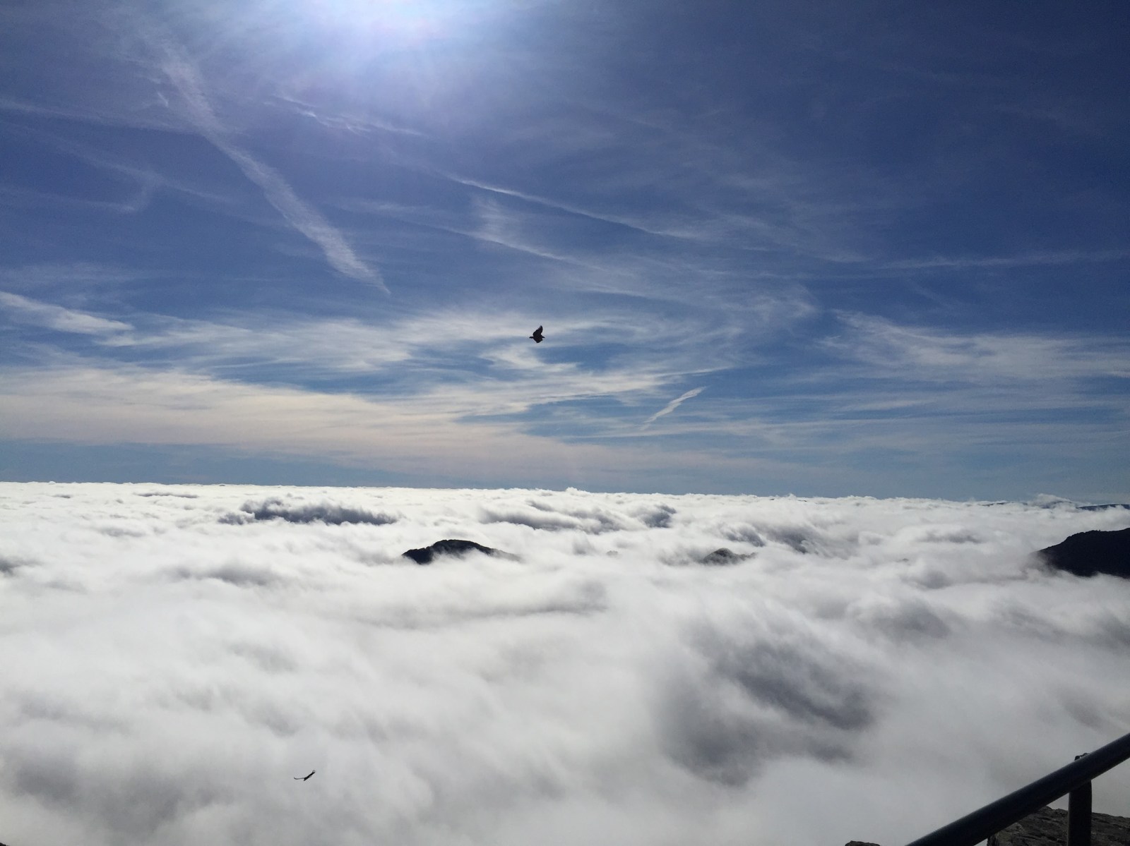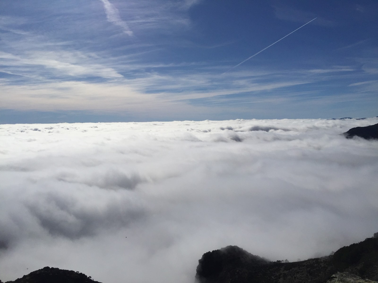 Seguimos el camino hasta alcanzar nuestro objetivo, la Peña Carbonera (1.505m) donde nos espera un espectáculo de nubes absolutamente maravilloso. Momento de respirar y alucinar con esas vistas imprevisibles debido al mar de nubes que tenemos delante de nosotros.