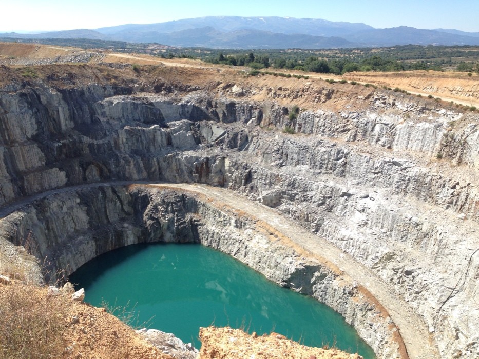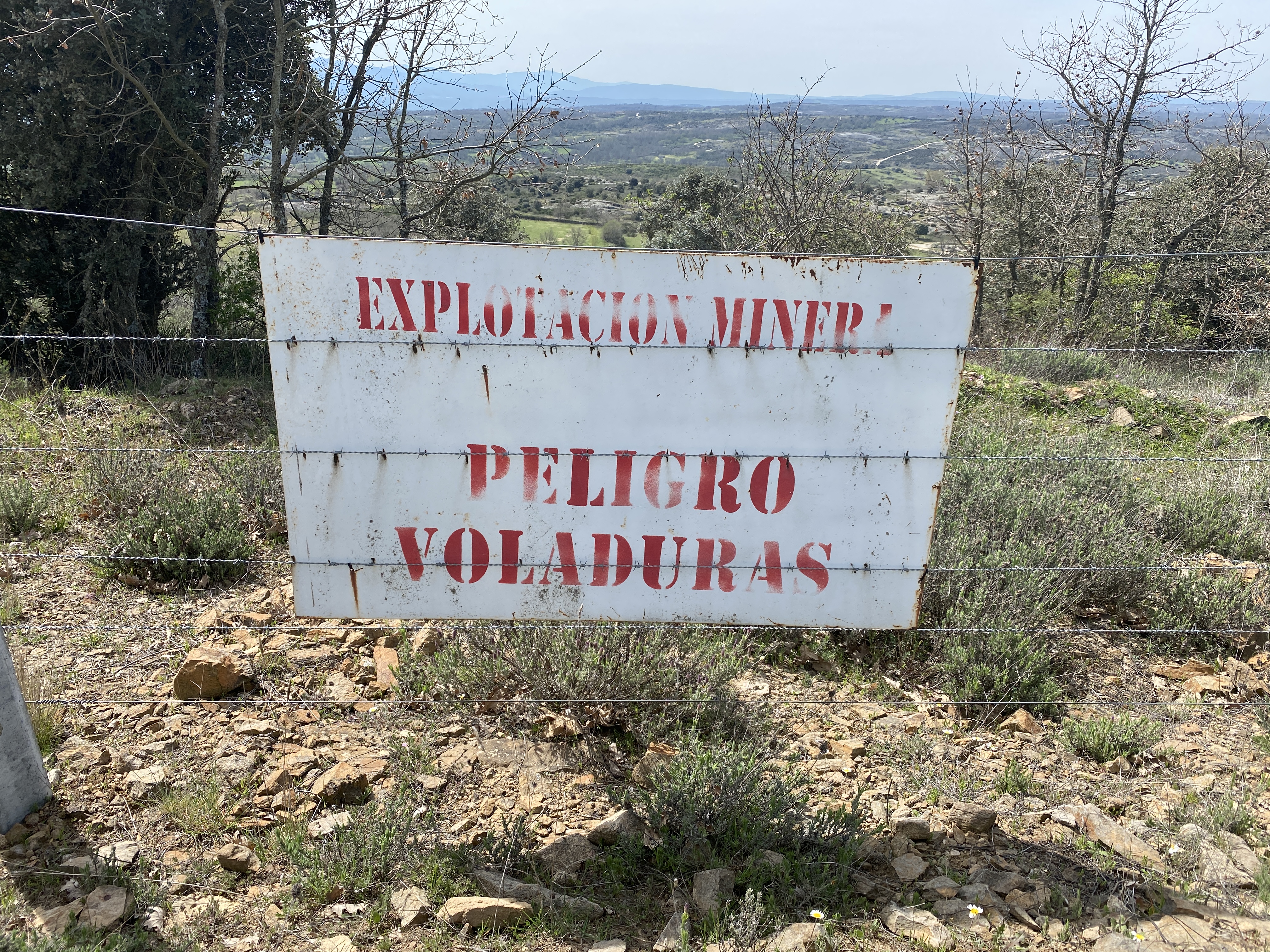 Abandonamos el bosque de castaños para caminar rumbo al Parque Temático de Granito, no sin antes pasar cerca de la antigua mina de wolframio cuya actividad es inexistente desde hace algunos años. Todavía se ven letreros que advierten de las voladuras que se llevaban a cabo en la zona, cuando la mina estaba a pleno rendimiento. No pudimos ver las huellas que, sobre el terreno, hizo la mina por estar demasiado lejos, pero es posible verlo desde otro punto distinto al que estábamos.