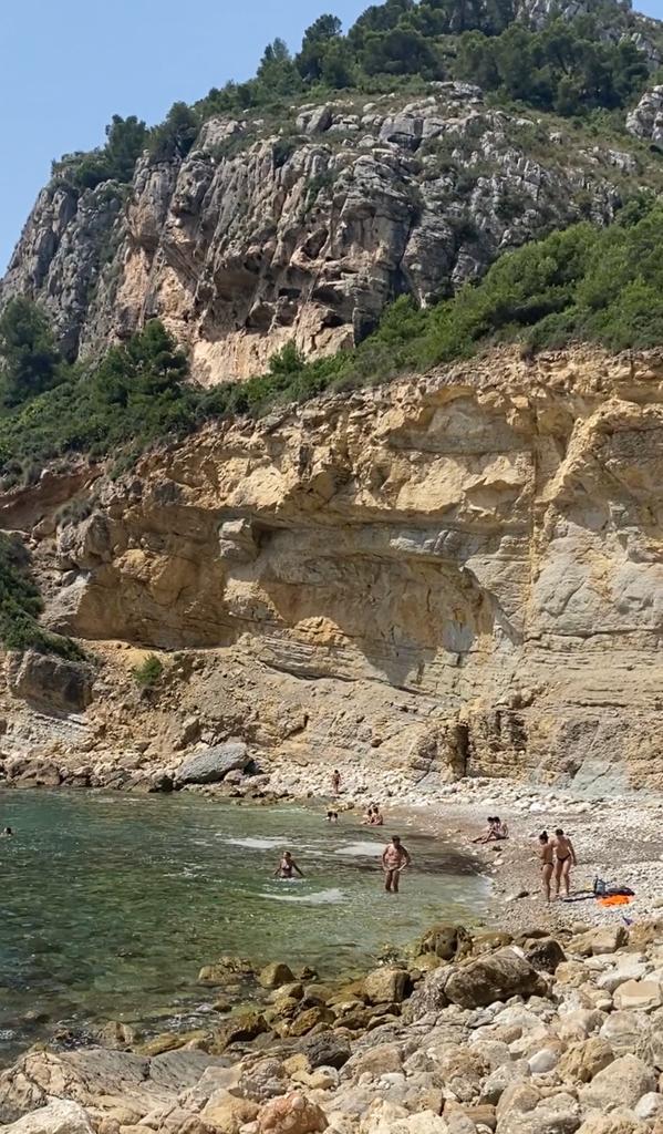 El baño es obligado aunque, he de decir, que la cala es más bonita desde las alturas. Eso sí, se agradece el agua más fresca de lo normal y el baño te deja como nueva. Apenas hay sombras a pie de playa y, si puedo recomendarte algo, es que te instales junto a las casetas de pescadores. Corre una brisilla que se agradece de qué manera.