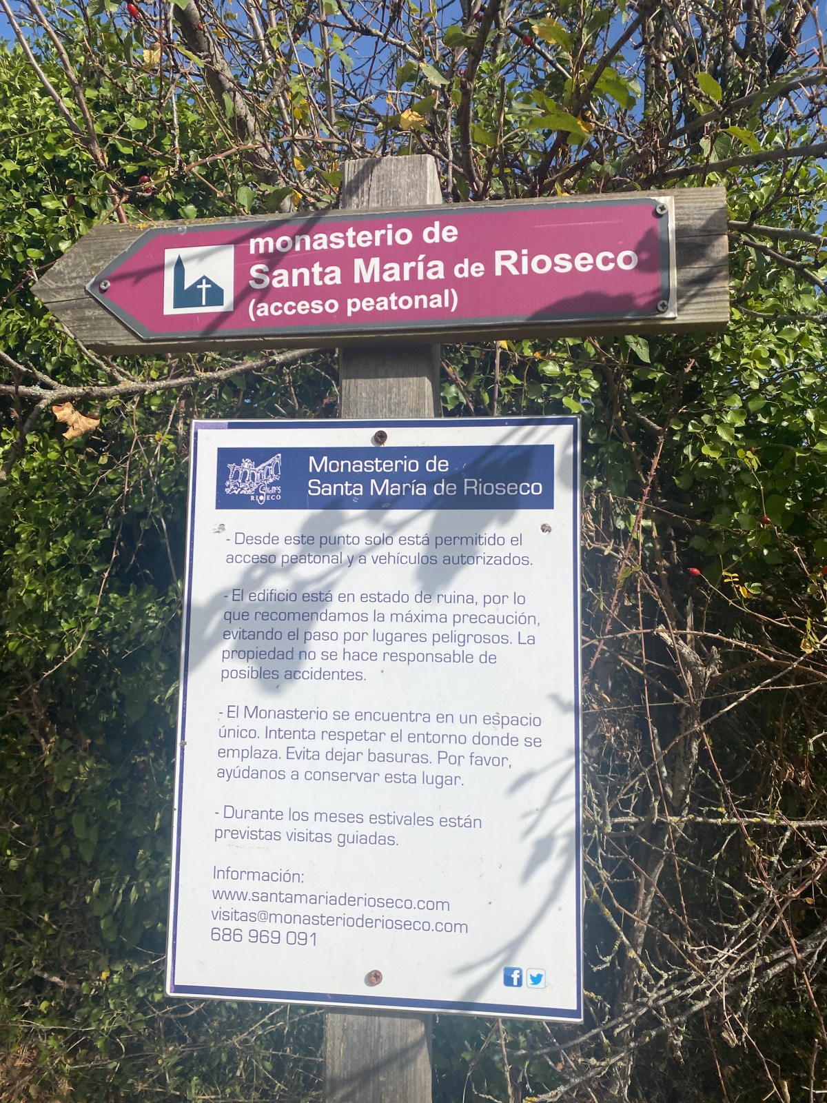 Nuestro objetivo final es el Monasterio de Santa María de Rioseco , un lugar que sorprende nada más llegar a él. El monasterio fue habitado por monjes de la Orden del Císter y, aunque ha estado abandonado y en ruinas a lo largo del siglo XX, tiene una bonita historia detrás protagonizada por una plataforma ciudadana llamada Salvemos Rioseco. Junto con el párroco de Rioseco, Juan Miguel Gutiérrez Pulgar, han llevado a cabo actividades de rehabilitación sin las cuales el monasterio habría terminado por desaparecer.