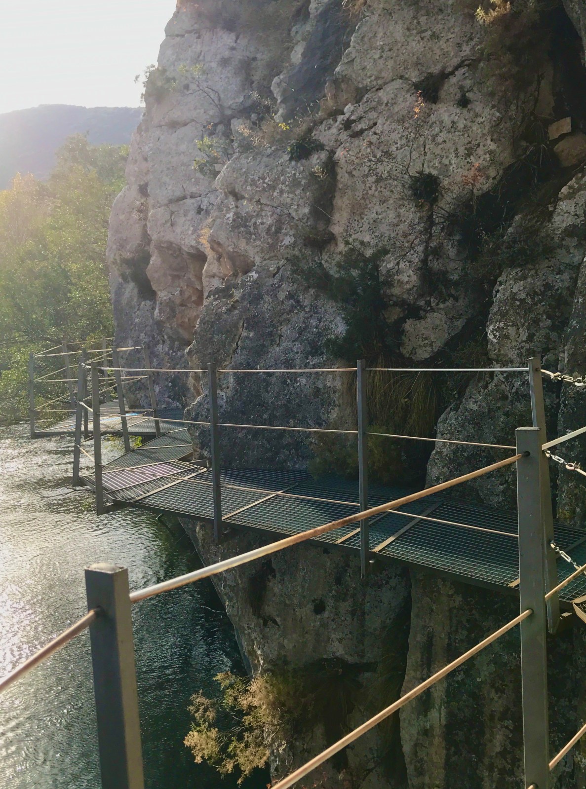 Una de las partes más curiosas de la ruta es la que está formada por plataformas de hierro que sobrevuelan la orilla del río. Es la única manera de poder continuar el trayecto, aunque es fácil de pasarlas, incluidos los que padezcan de vértigo ya que son totalmente seguras.