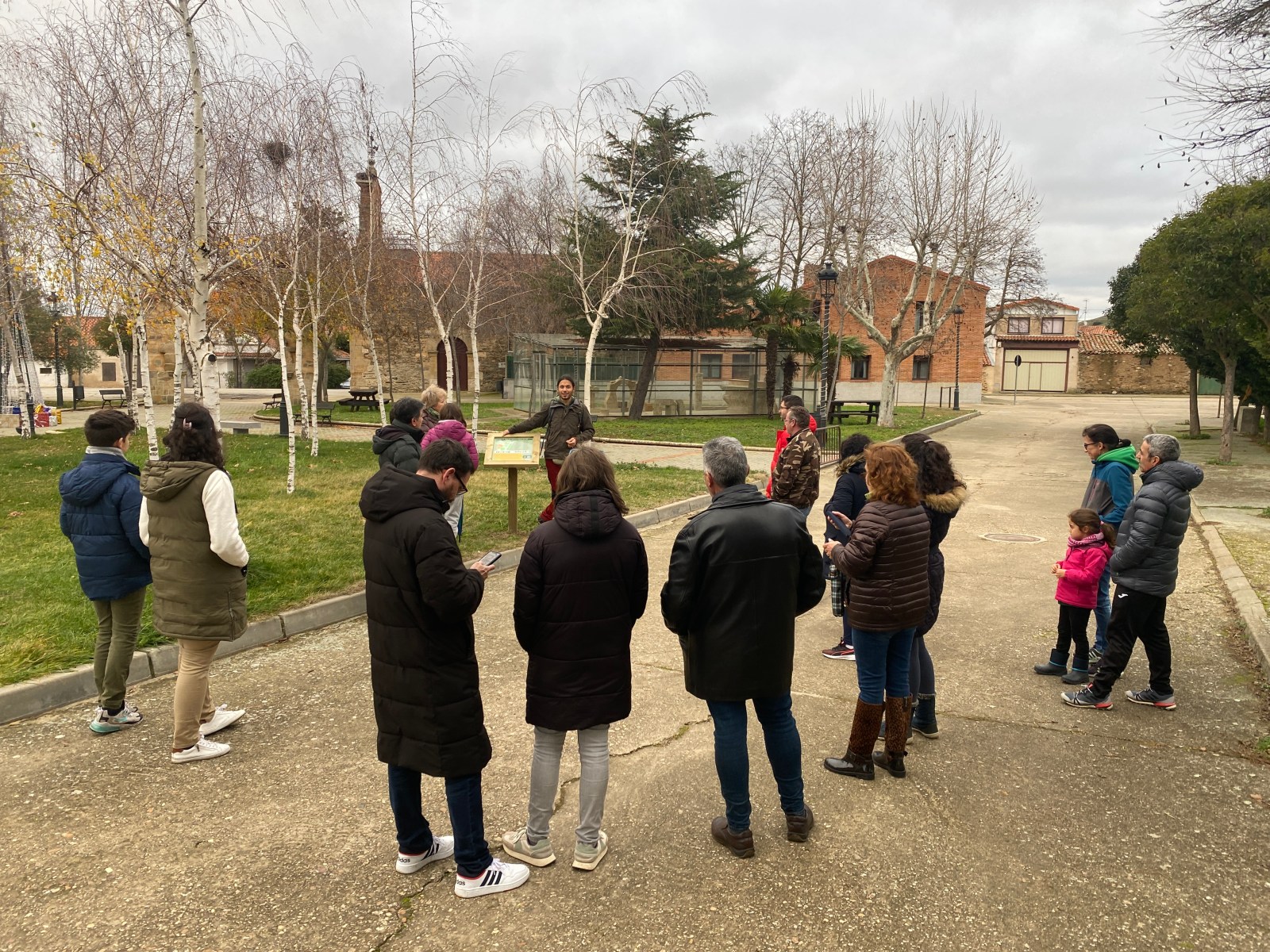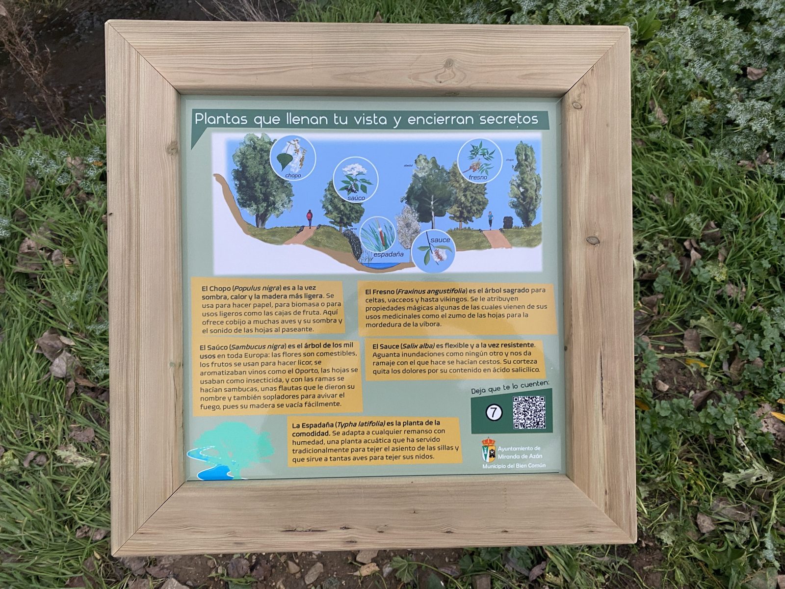 Me traslado hasta Miranda de Azán, a poco más de 9 kilómetros de Salamanca para ser testigo de la inauguración de este paseo promovido desde su ayuntamiento y que tiene como objetivo divulgar la riqueza natural de su entorno. Quedamos en la Plaza Toral, un punto de encuentro que sirve de inicio a la ruta. Un grupo de vecinos espera con ganas que empiece este paseo que nos mostrará Pablo Labajos– consultor medioambiental- que ha sido el encargado de diseñar los paneles explicativos del recorrido junto con las ilustraciones de Diego Ortega Alonso. Un trabajo con el que merece la pena detenerse y aprender. Además, en cada panel se insertan unos códigos QR en los que podemos escuchar a vecinos de Miranda de Azán contando curiosidades y anécdotas. Y es que niños y mayores se han prestado voluntarios para colaborar en este proyecto con el que aprenderán a valorar la riqueza medioambiental de su entorno.