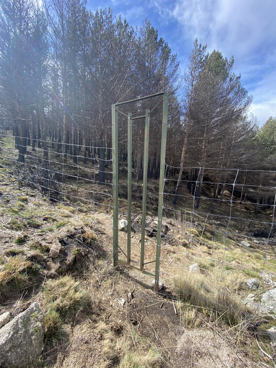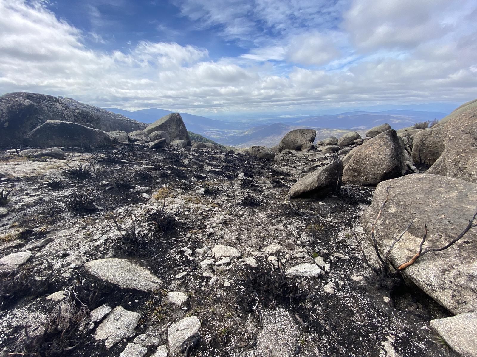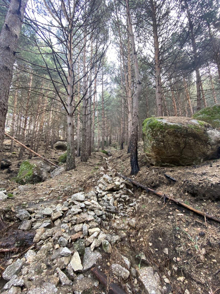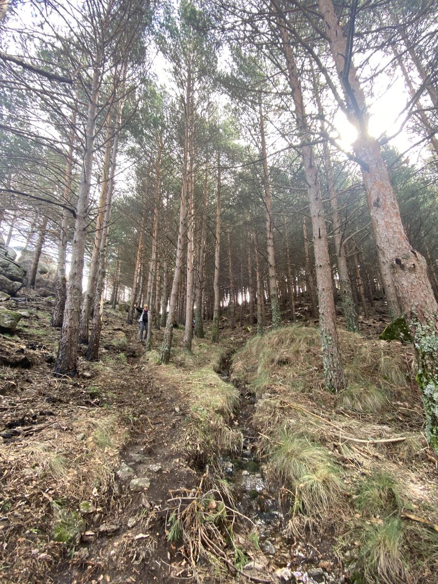 Desde el Mirador del Larix subiremos por un barranco junto al regato Jaramillo, que nos acompañará todo ese trayecto. Ya próximos a La Muela divisaremos parte de la subida a Hoya Moros y seremos conscientes del daño que provocaron los incendios del último verano en la zona.