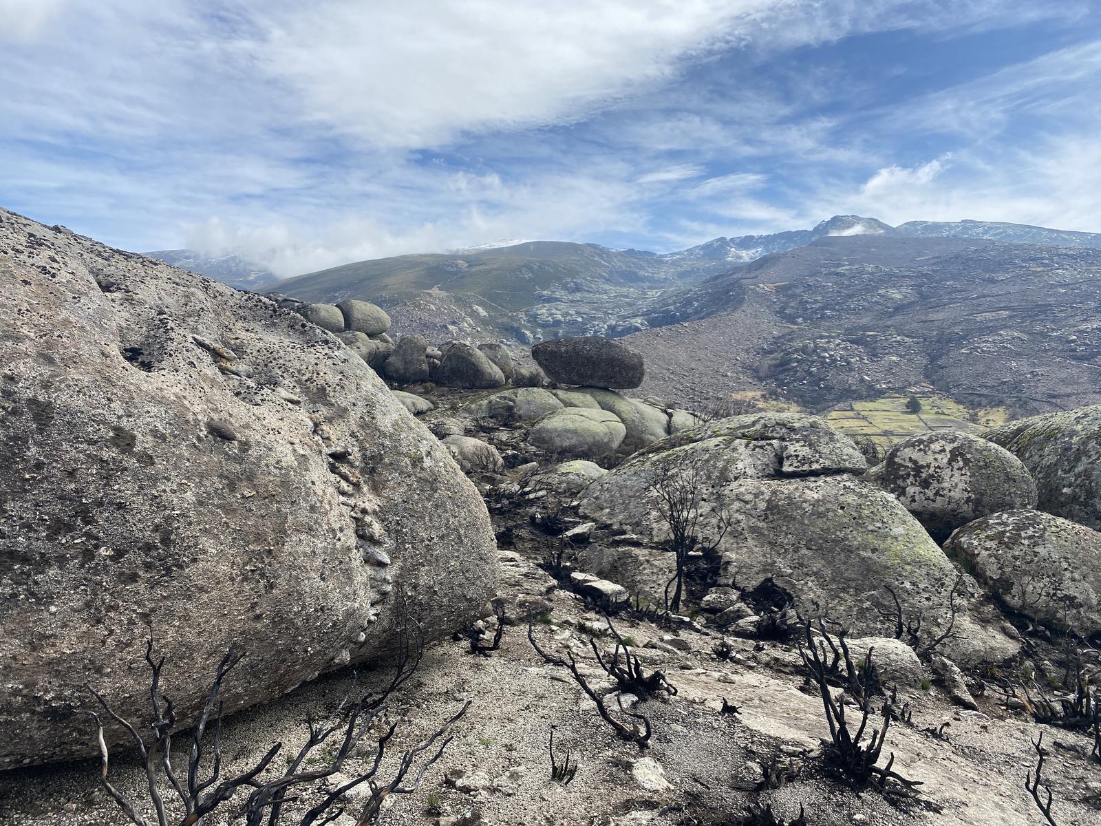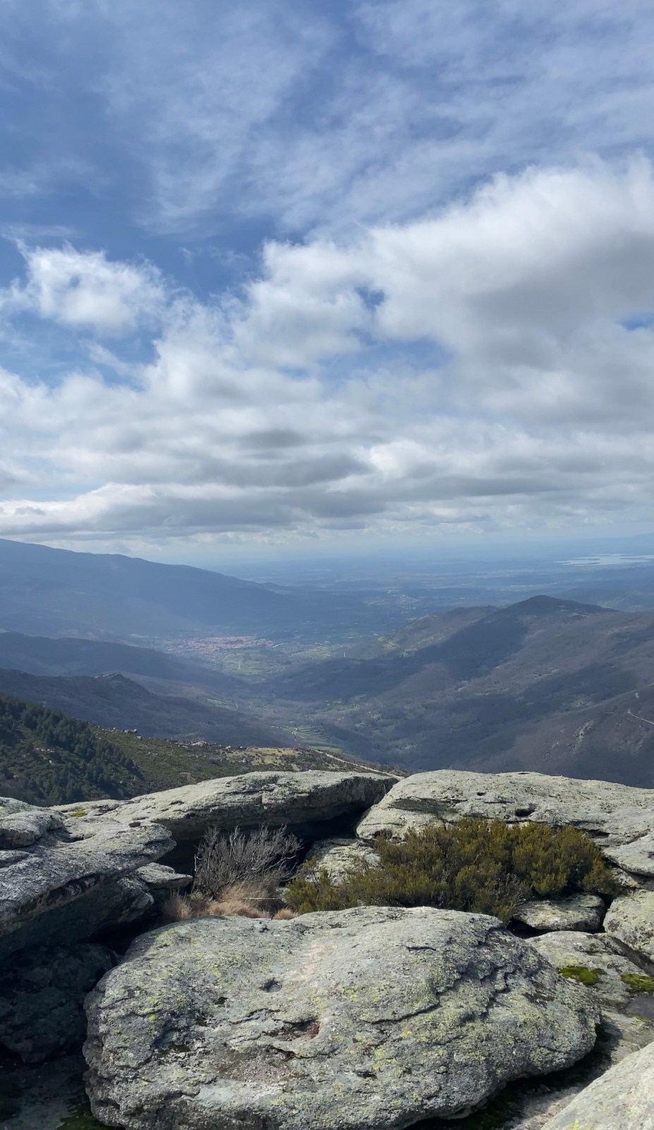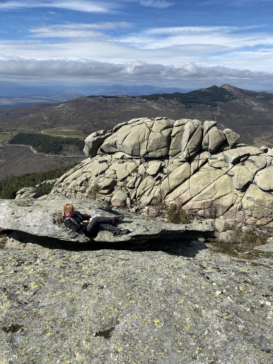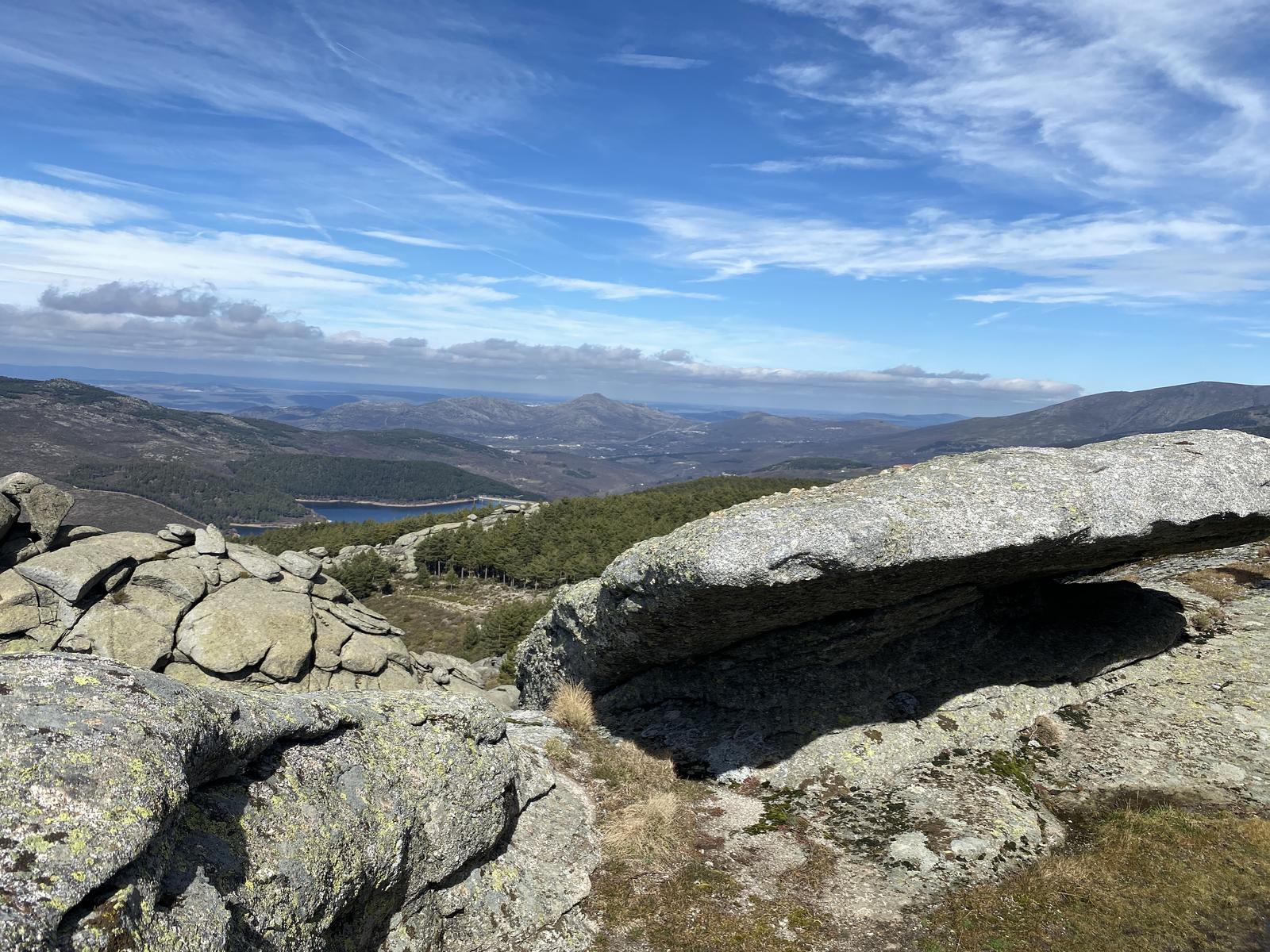 Cuando llegas a la cumbre se abre ante ti un espectáculo maravilloso con el Valle del Ambroz, la Sierra de Béjar, Hoya Moros, el pantano de Gabriel y Galán, el embalse de Navamuño o, en días muy claros, la Sierra de Francia. Solo la contemplación basta para pasar varias horas. Recomiendo comer allí mismo, porque la siesta de después tumbado en esos bloques de granito merece del todo la pena.