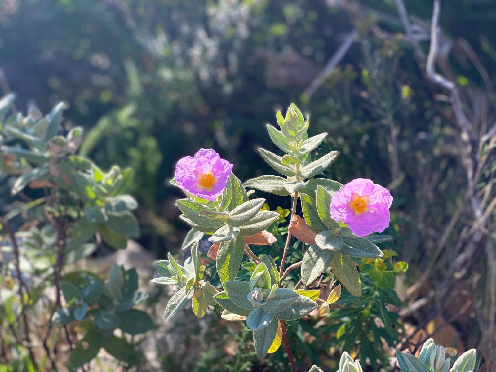 Llama la atención la variedad de flora que hay en la zona, desde el matorral- que es la forma más extensa- hasta flores de diversas especies en pleno esplendor. En torno a 600 especies distintas crecen en el Parque dependiendo de si están cerca del acantilado, en torno a la cumbre o más alejadas del mar y la salinidad. También es curiosa la forma de las piedras calizas de color blanco que con la erosión del viento han creado formas afiladas conocidas como Lapiaz. Estas piedras son las que dificultan incluso el caminar ya que están a lo largo de casi todo el trayecto. Por eso insisto en que hay que llevar un calzado adecuado para asegurar la pisada. Aunque, claro, los hay que han llegado a subir en chanclas…