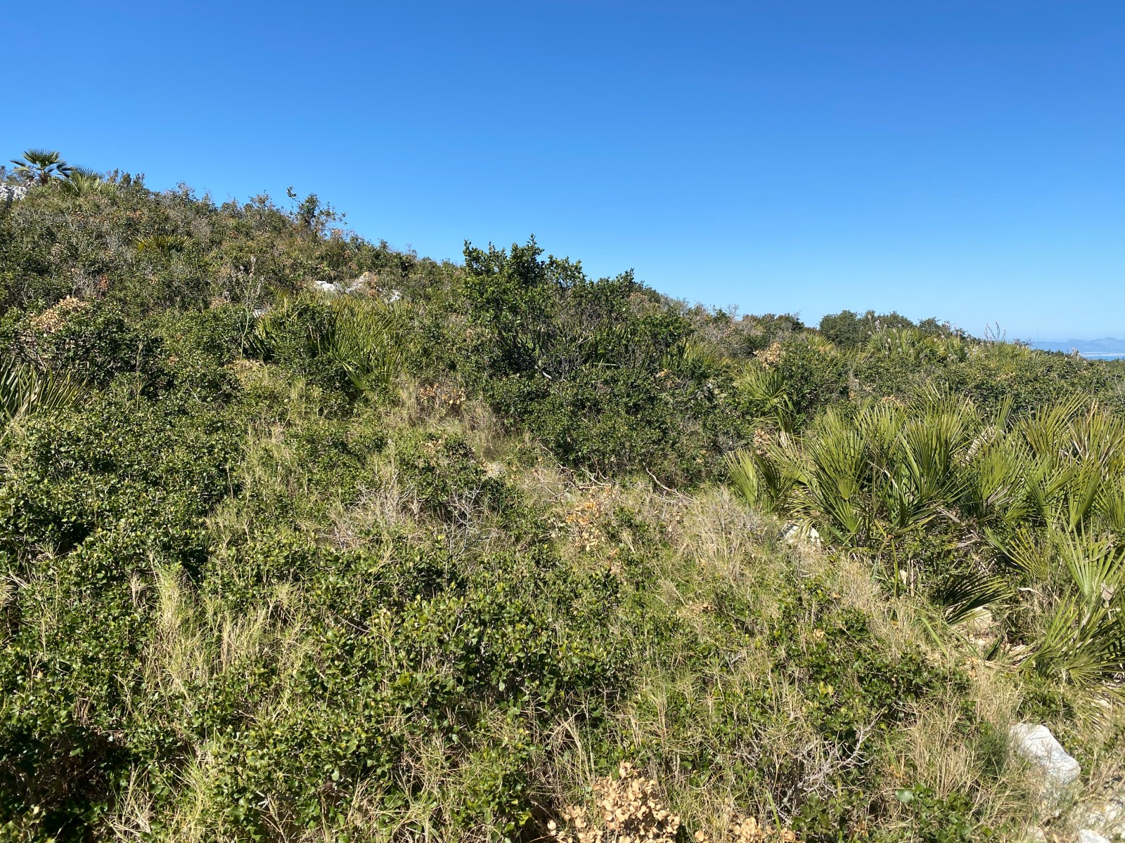 Hay dos maneras de llegar hasta la Cruz, pero nosotros elegimos salir del Camí de la Colonia, junto a la Ermita del Pare Pere, una pista de tierra por la que transitaban los vendimiadores hace décadas, cuando toda aquella zona estaba ocupada por viñedos. Ellos fueron los primeros pobladores de Denia y sería en 1921 cuando se puso en marcha la Colonia Agrícola del Montgó, un proyecto que incluía parcelas y casas sencillas para que los colonos las cultivaran. Algo que lograron con éxito y que empezó a decaer con la crisis de 1929 y el posterior abandono de las tierras.