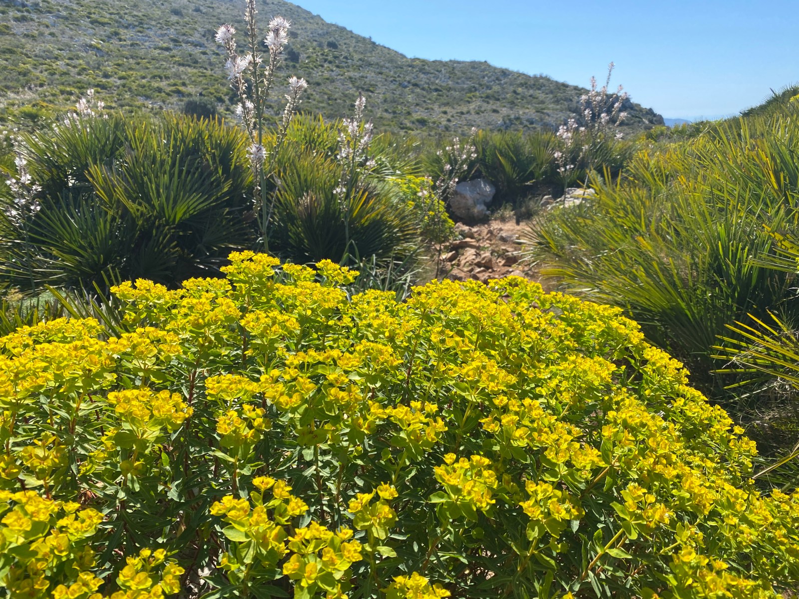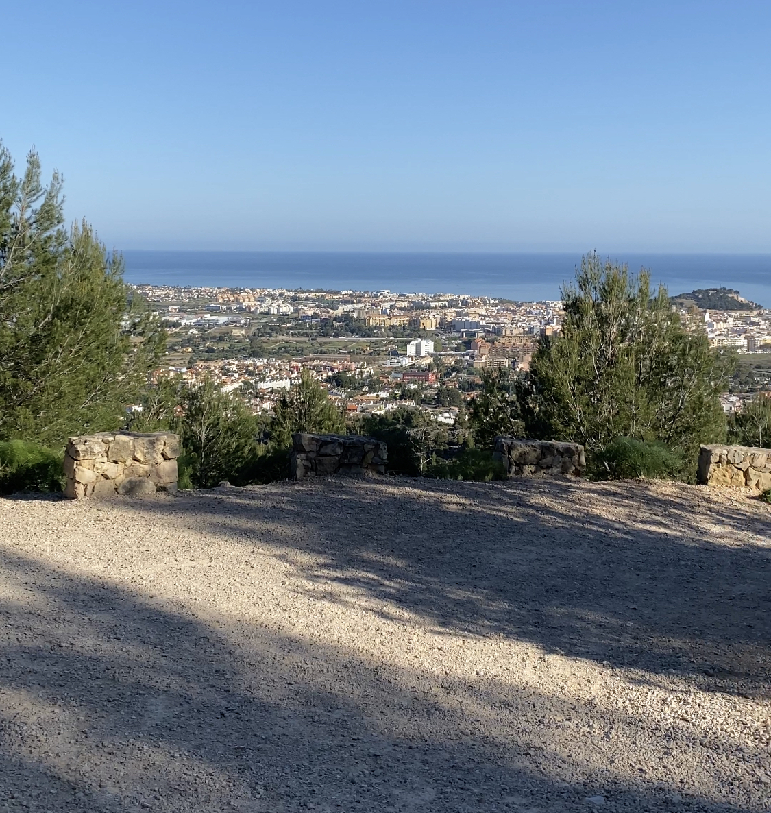 Esta parte de la ruta, que alcanza unos cinco kilómetros, es la más visitada por quienes pasean a sus perros o entrenan corriendo ya que es llana y las vistas dejan ver Denia desde las alturas.
