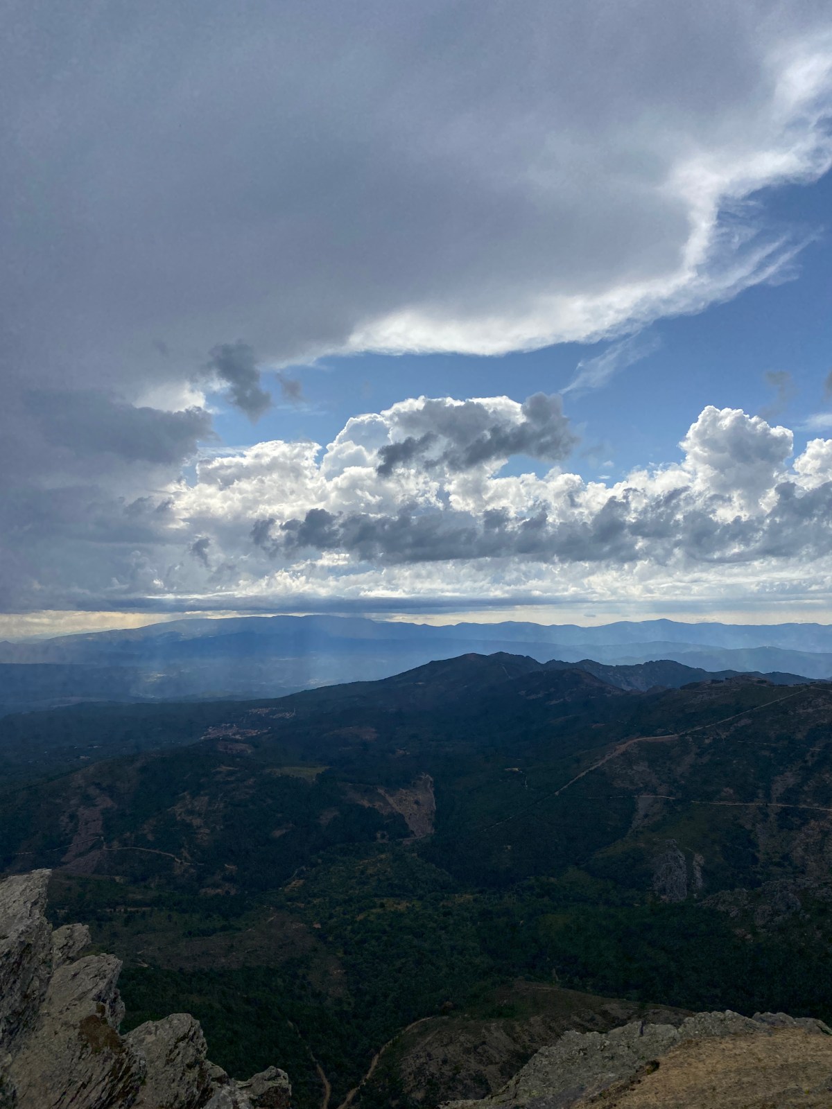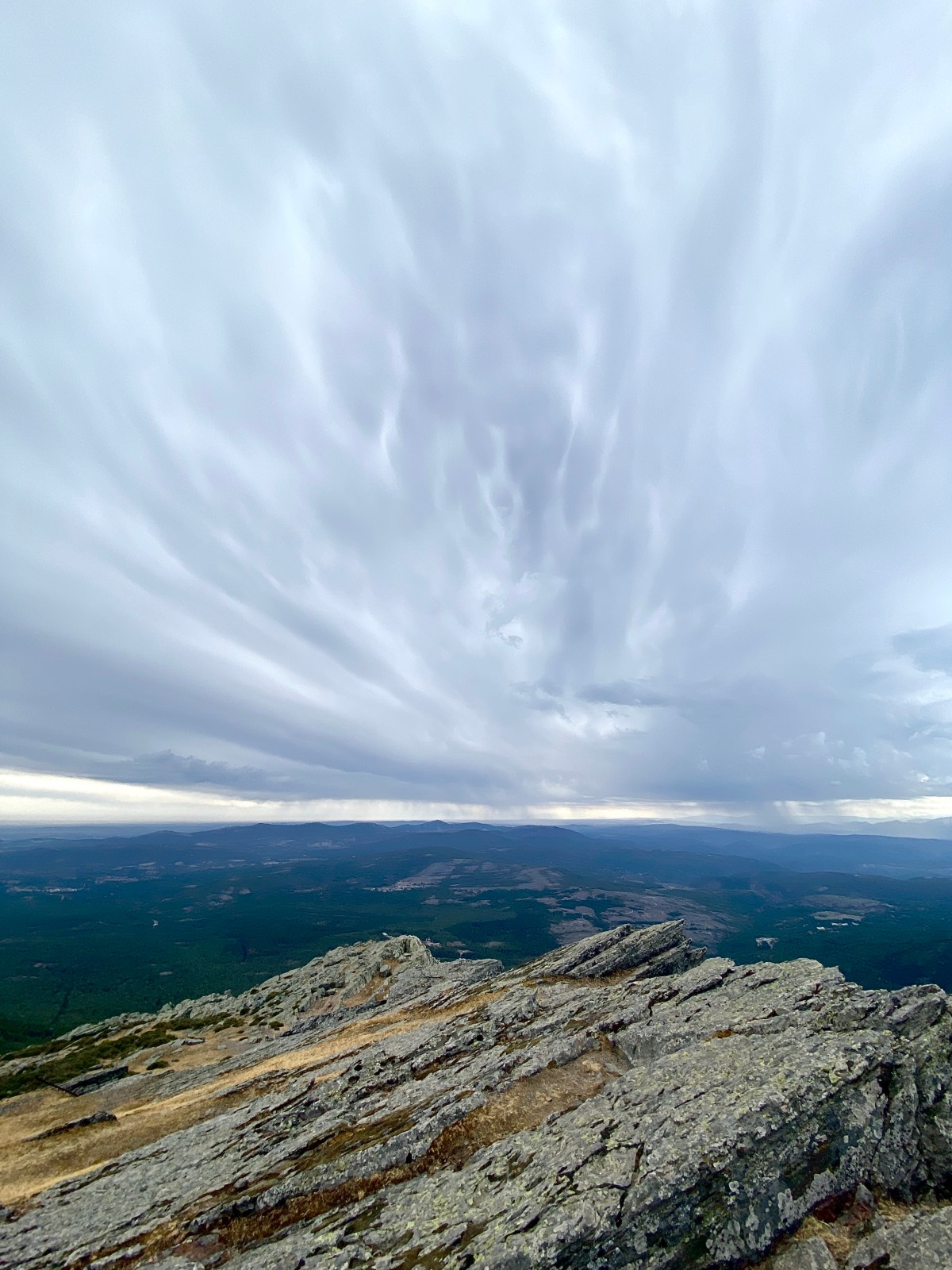 Pero volvamos al presente. Antes de llegar al Casarito, y viendo el cielo plagado de nubes maravillosas que presagiaban un cambio del tiempo, lluvias incluidas, decidimos subir a la Peña de Francia para divisar el paisaje. Todo un acierto a juzgar por las imágenes que nos regaló aquel momento improvisado.