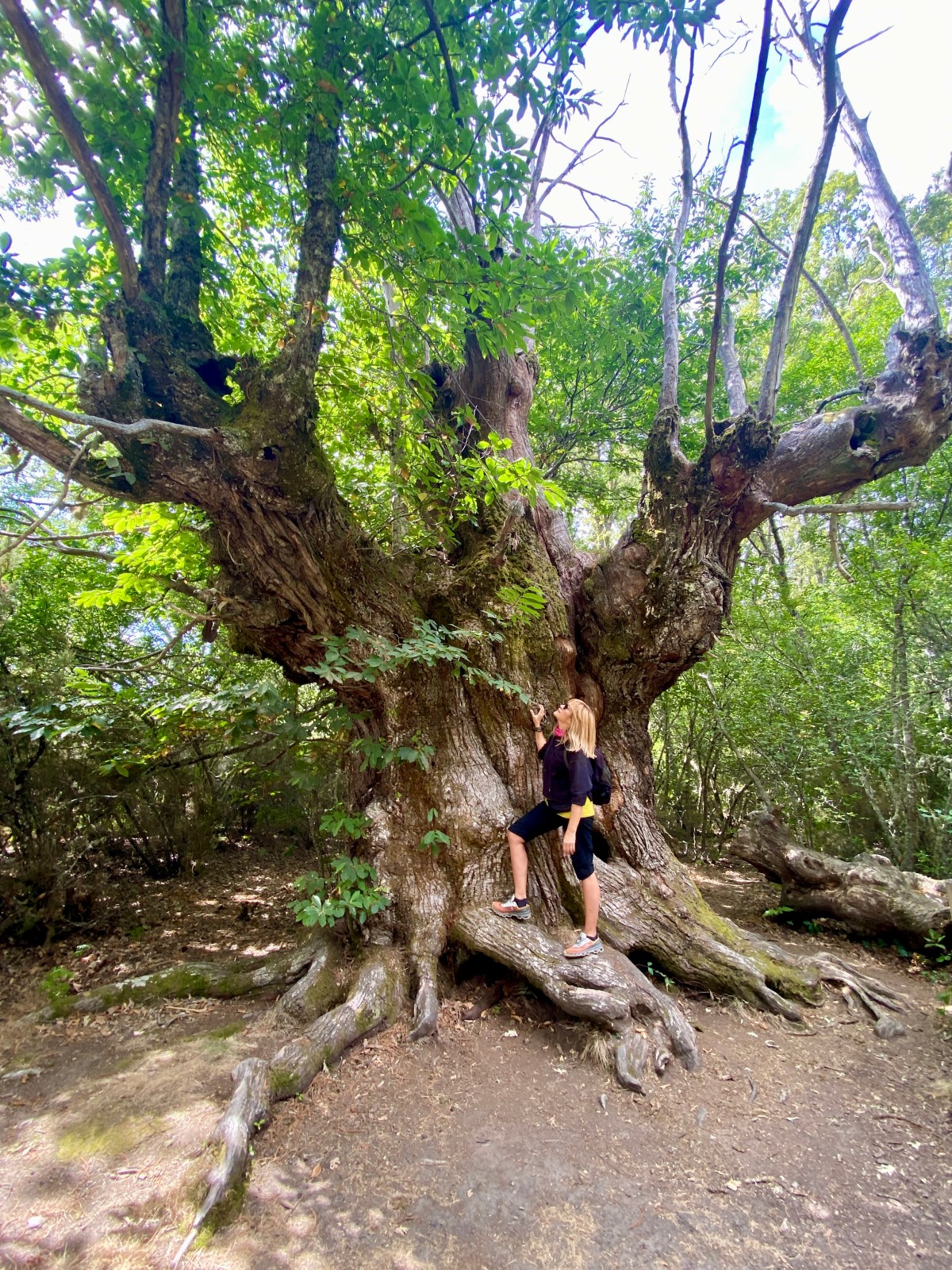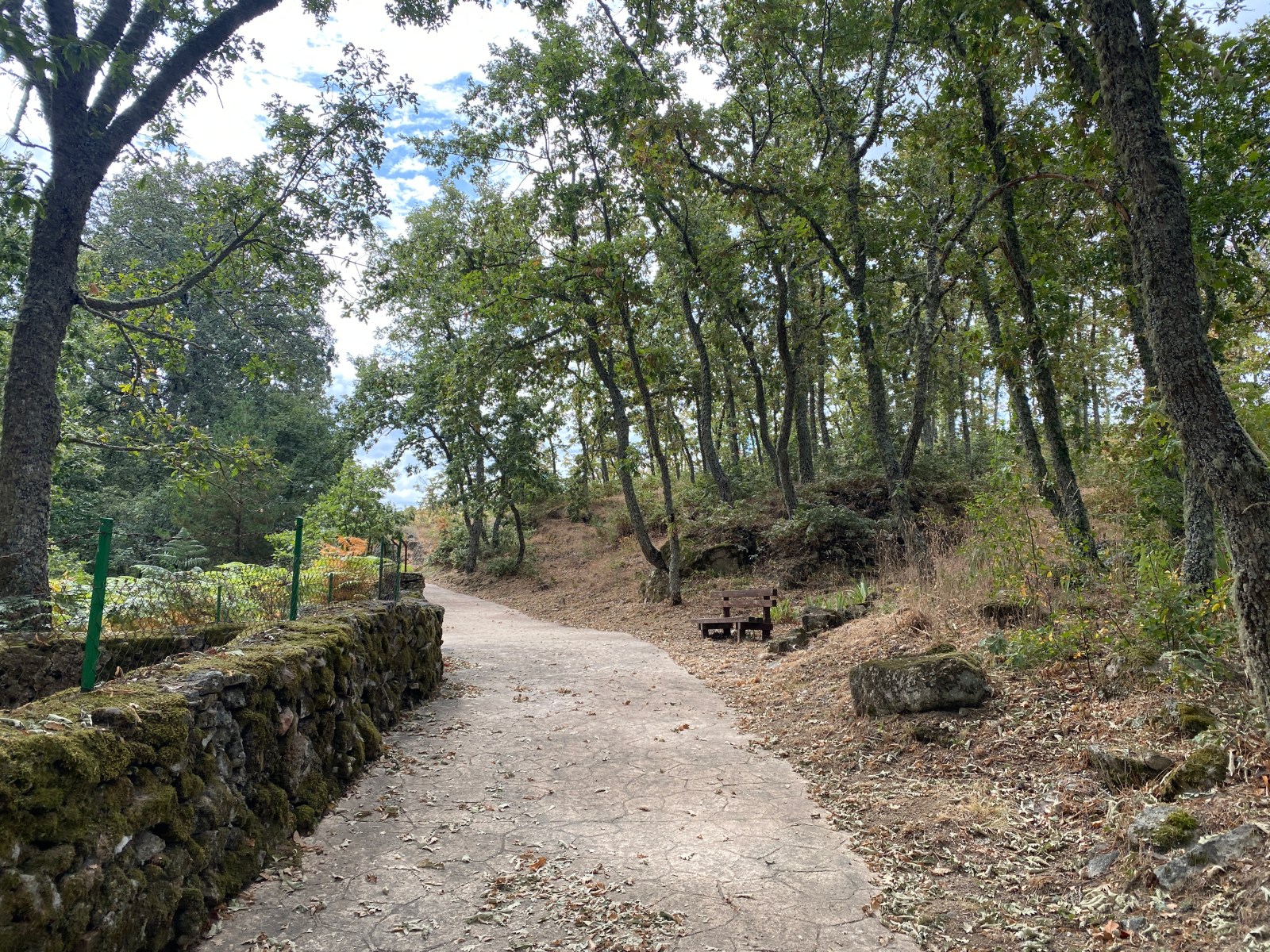 Y ahora ya sí, nos dispusimos a hacer la pequeña ruta de los castaños centenarios. Se trata de un recorrido de 1,6 kilómetros, accesible y familiar, ya que todo el recorrido es llano y sobre suelo en madera, hormigón impreso o tierra.